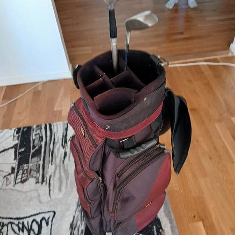 Säljer en vagnbag Wilson i mycket bra skick med en golfklubba och en bollhåv för lägger ut den nu för golfsässongen börjar snart.