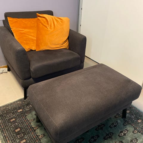 Mio fotpall / fåtölj / pall möbler inredning vardagsrum grå textil