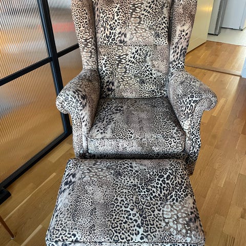 Fåtölj med fotpall. Varsamt använd.