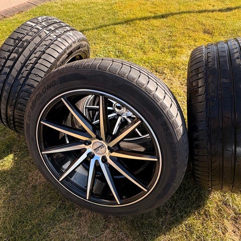 Säljer ett set snygga fälgar med åretruntdäck, inköpta 2024 och endast körda en halv vinter.