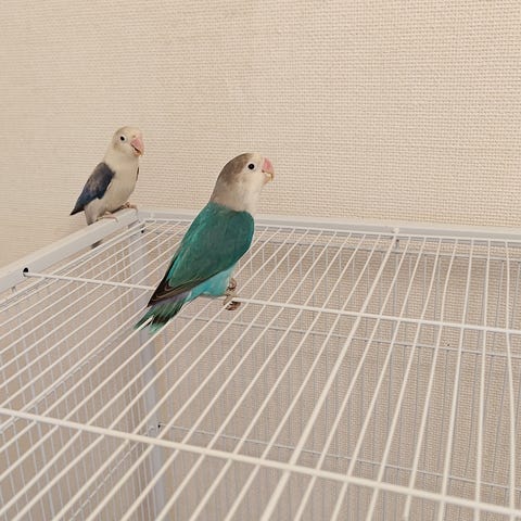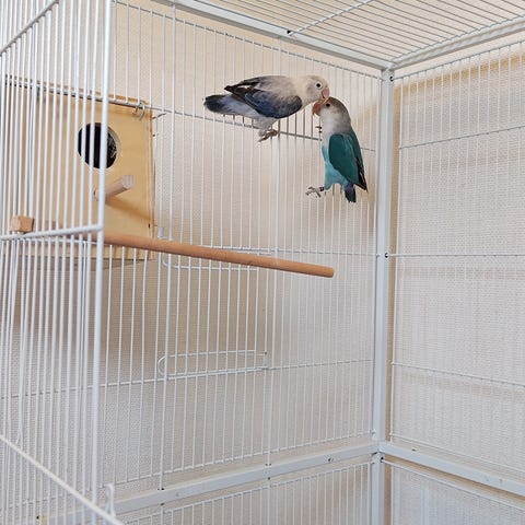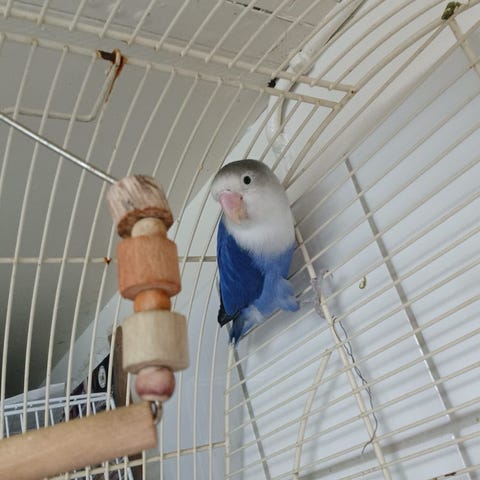 En bur och holk medföljer i pris.
