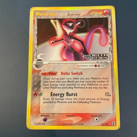 Pokémon Rayquaza samlarkort. Kortet visar Rayquaza med 80 HP och attackerna Outrage och Flamethrower. Framsidan har illustrationen av Rayquaza mot en röd bakgrund och baksidan har klassisk Pokémon-design med pokéboll. Kortet är av standardstorlek för Pokémon-samlarkort och är tryckt på kartong med färgtryck på båda sidor.