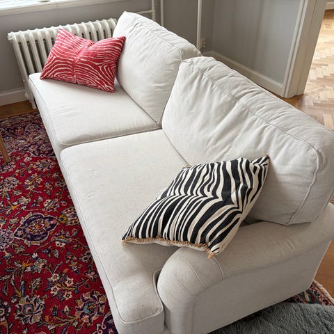 Soffan har en modern design med raka linjer och passar perfekt i både minimalistiska och mysiga hem. Väldigt skön sittkomfort med mjuka dynor – perfekt för både vardag och filmkvällar.