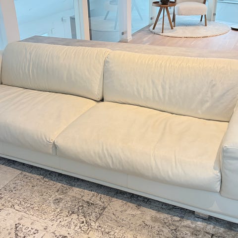 Säljer en stilren och mycket bekväm 3-sits soffa från Mio, modell Harper, i färgen Jump offwhite (mjukt manchesterliknande tyg).