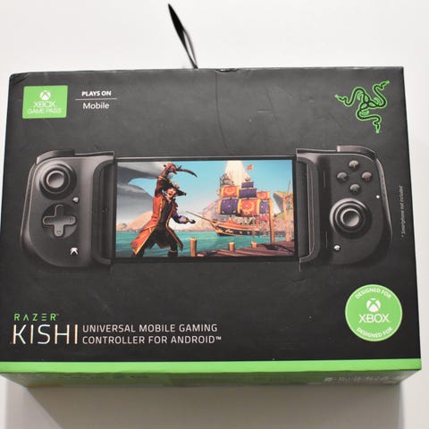 Razer Kishi spelkontroll för mobil. Universal gaming controller utformad för att hålla en smartphone monterad i mitten av kontrollen. Kontrollen är svart och har två analoga styrspakar, riktningsknappar, funktionsknappar samt axelknappar. Anslutning sker via mobilens port (modell anpassad efter telefonens kontakt, se förpackningens specifikationer). Avsedd för spel på mobiltelefon med ergonomisk handhållen design för bärbart spelande.