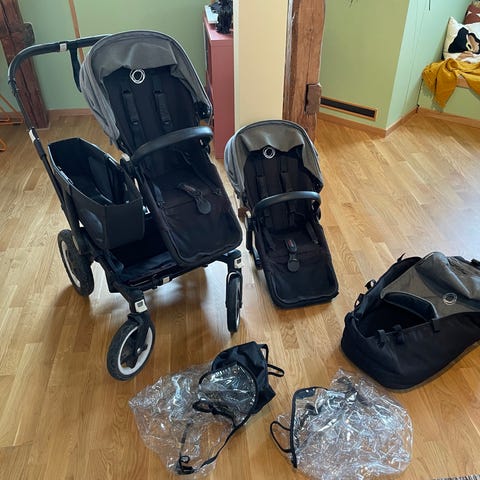 Bugaboo Donkey 3 Duo syskonvagn med massa tillbehör. Den är i väldigt fint skick men lite repor på chassit, efter att ha lastat in och ut ur bilen. Allt är helt och intakt. Har förvarats inomhus i djur- och rökfritt hem. Det som följer med är: