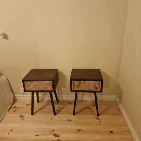 2 st ILVA sängbord Aries i ek med rottingdörr