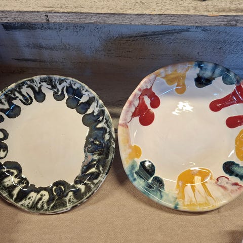 Arabia Syksy väggtallrikar i keramik med höstmotiv. Set om 2st tallrikar med rund, något oregelbunden form och centralt placerade, kvadratiska bildfält med natur- och höstmotiv i dova toner. Baksidan är märkt med "Syksy / Höst / Autumn / Herbst" samt Arabia Finland och formgivarens signatur. Tallrikarna är försedda med upphängningsanordning för väggmontering och är avsedda som väggdekoration.