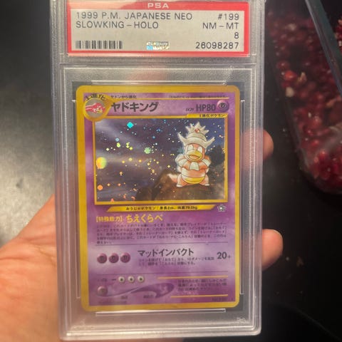 Pokémon Exeggutor samlarkort på japanska. Standardstorlek för Pokémonkort. Motiv med Exeggutor mot gul ram. Baksida med klassisk blå Pokémon-design med pokéboll i mitten. Passar för samling eller spel i Pokémon Trading Card Game.