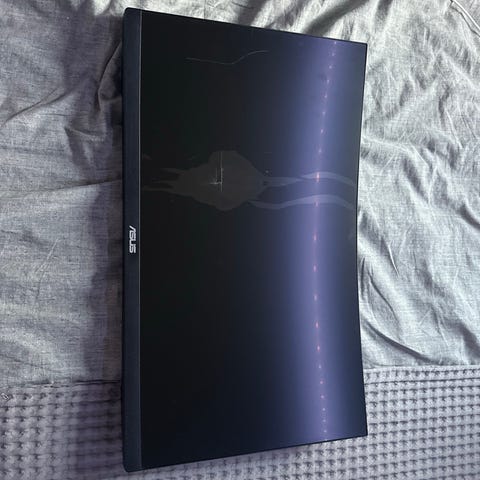Säljer en ASUS TUF Gaming 270Hz skärm. Skärmen är trasig och har linjer i bilden, dåliga färger samt en spricka upptill.