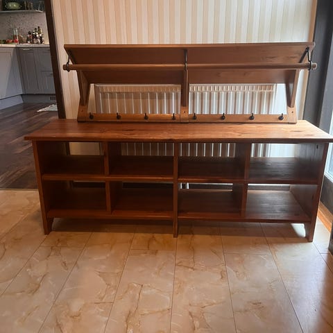 Nätt liten rödbetsad vintage hylla.