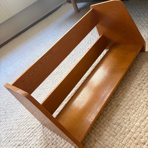 rödbetsad vintage hylla prylhylla krysshylla retro
