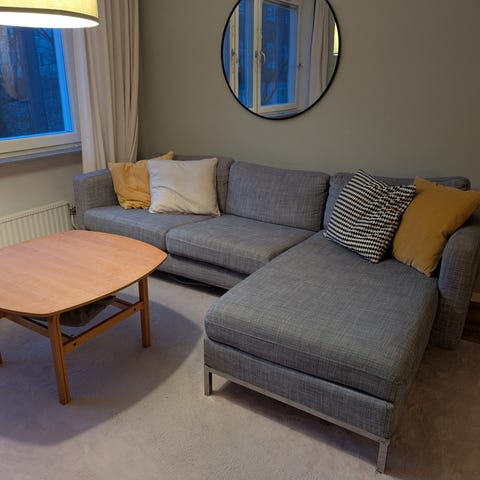 Soffbord och puff/fotpall på bilden ingår om man vill