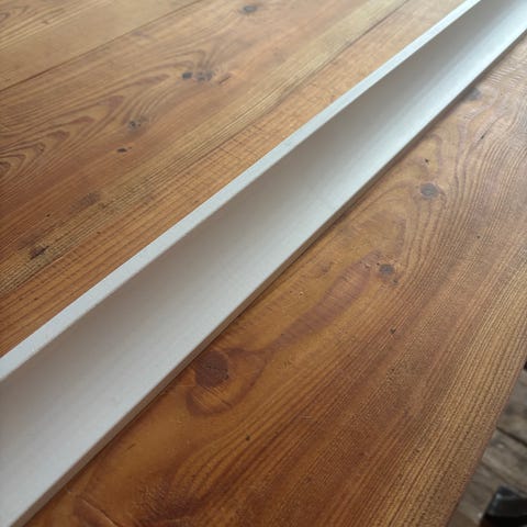 Ny Ekfanerad fotlist på massiv kärna av furu 12×58×4000 a 50:-/m.