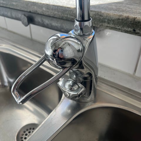 Köksblandare i krom med hög, svängbar pip. Ettgreppsblandare med diskmaskinsavstängning. Passar för montering i kök eller tvättstuga där hög pip underlättar disk och fyllning av större kärl.