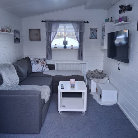 Stugan har golvvärme.