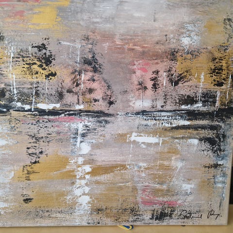 70x50 cm av ren lyx i gyllene hösttoner, ett äkta konstverk av en riktig konstnär. Varje hem förtjänar något värdefullt som attraherar pengar, en tavla i guldtoner som passar in i alla interiörer. Om du bär med den som present är det en fullträff. Den heter "Utflykt i en gyllene dröm". Den är handmålad på canvas i akryl med kvalitativa och dyra färger som varar för evigt, i ett 3D-målarsätt som ger dimension, djup och livfullhet. Detta är "hälsosam" konst, målad av handen på en empat som har kontakt med källan och inte bara är en kanal. Tavlan har målade kanter och ram är inte nödvändig, den kan hängas på väggen direkt. Den säljs utan ram, därför är priset lägre än det verkliga marknadspriset. Tavlan bokstavligen lyser och du kommer alltid att stanna upp bredvid den för att se på den på nytt. Den är redo för utställning utomlands.
