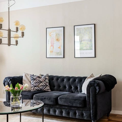 Jättefin howardsoffa i sammet i bra skick. 4sitsig soffa som är skön och elegant.