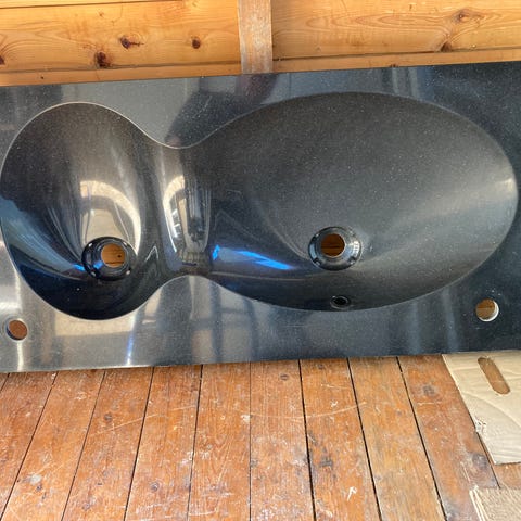 Dubbelhandfat badrum 120 cm bredd vit ink blandare Ifö Caprice