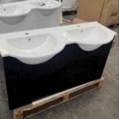 Dubbelhandfat för badrum i vit färg. Två integrerade tvättställ med plats för två blandare och två bottenventiler. Passar för montering på vägg eller på kommod anpassad för dubbelhandfat. Materialet är ett slätt, lättskött sanitetsmaterial som är enkelt att rengöra. Lämpligt för badrum där man önskar två separata tvättplatser.
