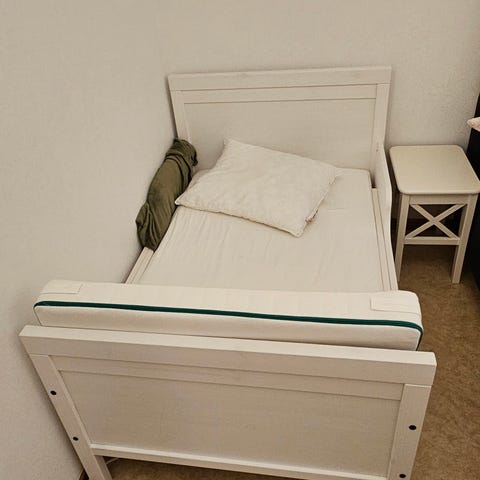 Säljer barnens växasäng, SUNDVIK. Köpta för 3 år sedan. 80X200 när den är helt utdragen. Mått finns på sista bilden.