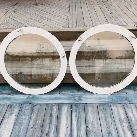 Nya fönster som har blivit över från olika byggen.