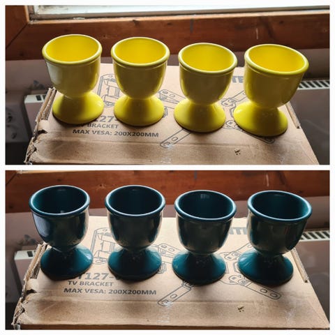 Säljer 6 st stilfulla äggkoppar till påsk enl bilder