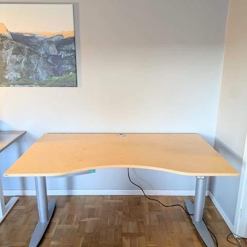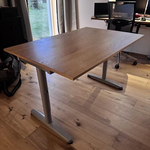Jag säljer nu ett rejält och stabilt elektriskt skrivbord utrustat med det välkända danska systemet från LINAK. Detta är inte ett vanligt enklare skrivbord, utan en kraftfull konstruktion byggd för att stå stadigt även i högsta läget.