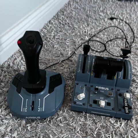 Thrustmaster TCA Airbus Edition joystick och throttle quadrant för flygsimulator. Fungerar utan anmärkning. Ingen låda. Endast kontroller och kablar.