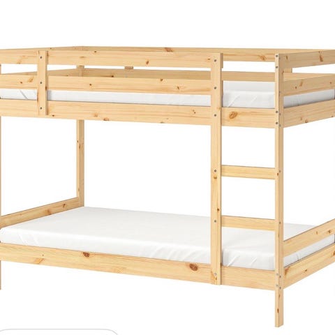 Nedmonterad. Medföljer madrasser och bäddmadrasser.