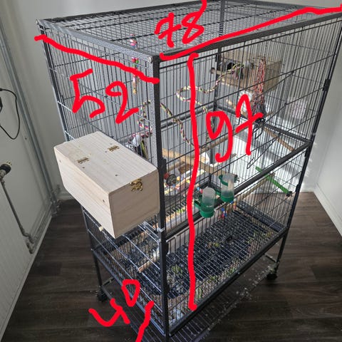 En bur med tre fåglar