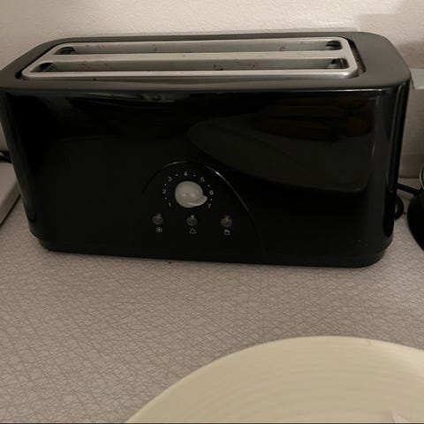 Brödrost i svart med plats för 4 brödskivor. Modellen har inställningsratt för flera rostningsnivåer samt knappar för defrost, reheat och cancel. Säljes mot avhämtning! Ansluts med vanlig stickkontakt för användning i kök eller pentry.