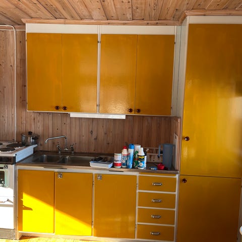 60-talskök med nyare vitvaror bortskänkes under förutsättning att du hjälper oss att ta ned och forsla bort allting. Diskmaskin, spis, kyl och frys funkar fint. Obs måste hämtas mellan 10 och 14 april. Eventuellt kan upphämtning ske tidigare, men allra senast 14 april.