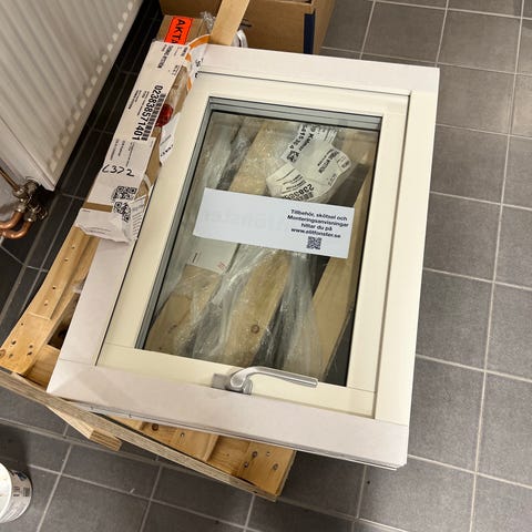Fönster med spröjs i vitt utförande. Fyrdelad spröjsindelning och glas med struktur. Passar exempelvis till bostadshus, fritidshus eller uthus där man önskar ett spröjsat fönster med insynsskyddande glas.