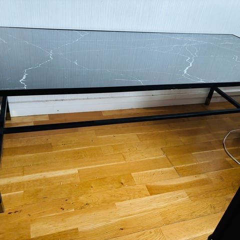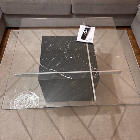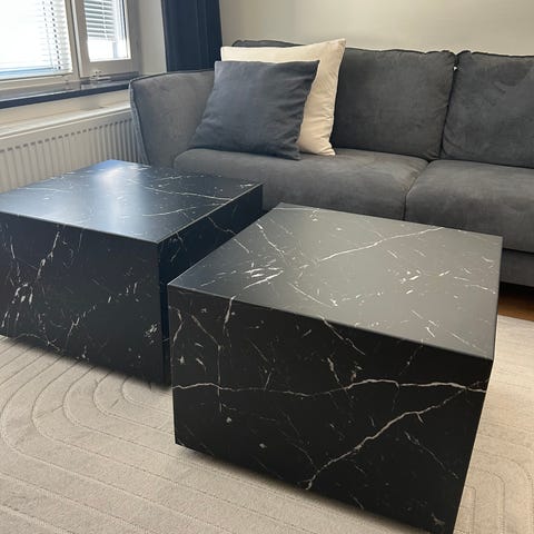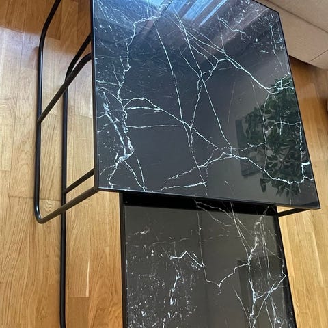 Mycket fint och elegant soffbord i 2 delar från Mio, svart marmor/glas och svarta metall ben.