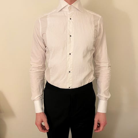 Stenströms smokingskjorta i mycket fint skick, använd endast ett par gånger. 100% bomull (Twofold superior cotton), storlek 38 Fitted body (heter numera Regular Fit), dold knäppning, dubbla manschetter. Nypris ca 1900:-.