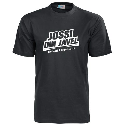 Populär svart band-tisha i mjuk bomull. Tryck fram och bak. Framtill står det "STRIPPOR OCH LADD ON TOUR" i guld. Baktill finns ett påstått citat av Gudrun Schyman i rosa text: "Vad är det här för patriarkalt och reaktionärt skitband? Jag ska svepa två flaskor rödvin och pissa på dem!"