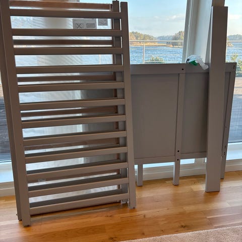 IKEA Sundvik spjälsäng grå + madrass & tillbehör (komplett paket)