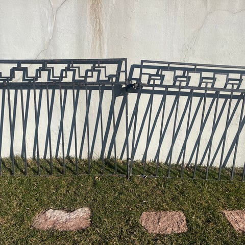 Smidesräcke i svart metall med dekorativa hjärtformade detaljer. Räcket är avsett för montering vid exempelvis trappa eller nivåskillnad utomhus. Tillhörande metallstolpar för infästning ingår, anpassade för montering mot mark eller trappsteg. Lämpligt för användning som enkelt skyddsräcke eller avgränsning vid entré eller källartrappa. 500kr