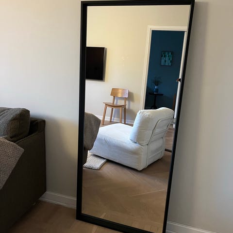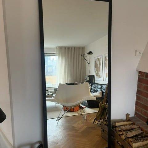 Svart spegel med stålram. Storlek 190x90