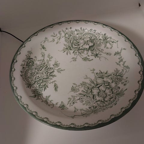 Mönster: "Ceres", kännetecknat av en tryckt blommönsterdekor i grönblå ton.