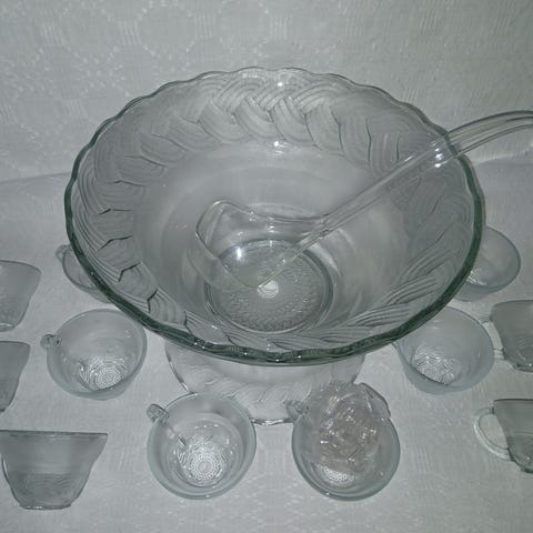 Elegant GLASSERVIS - stor SKÅL + 12 koppar