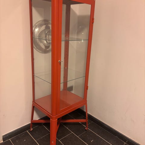 Röda IKEA Biby vitrinskåp