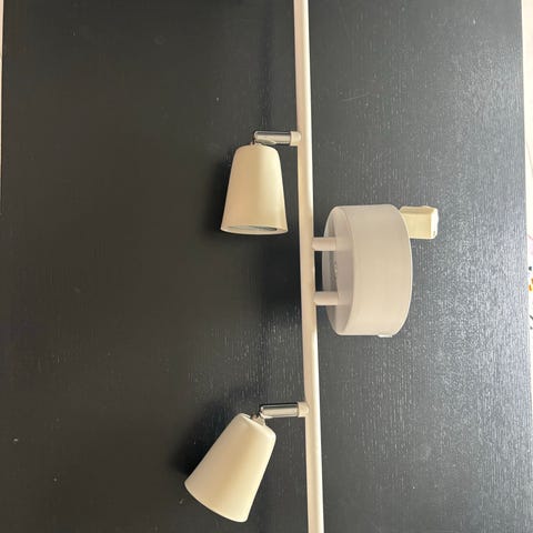 En svart med spotlight som är flyttbara. Ej kontakt i den så har ej kunnat kolla om lamporna funkar
