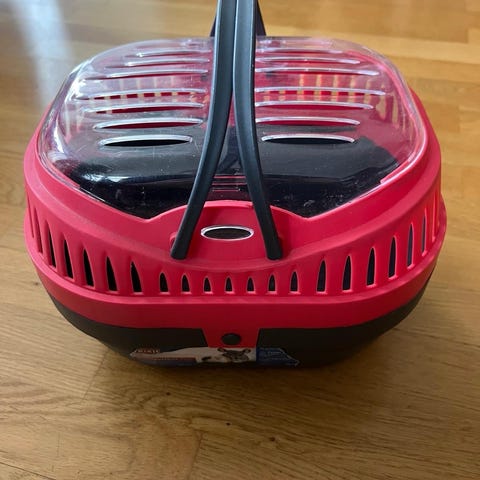 Transportbur för smådjur röd/svart plast