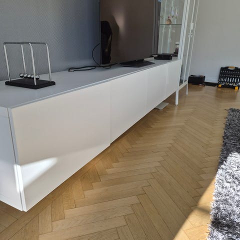 Fin Tv bänk med förvaring och glasluckor