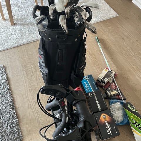 Komplett Callaway-set inkl bag: Driver, spoon, 60gr, 56gr, 52gr, wedge, pitch, 9;a, 8:a, 7:a, 6:a. Använda 1 säsong (2025)