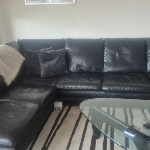 Fantastisk skinnsoffa kostade 17000 ny nersatt från 30000(!) säljer den då jag inte har plats och då mina barn håller på att massakrera den dagligen vilket mest stressar min tjej. Finns fyra ben i stål till.
