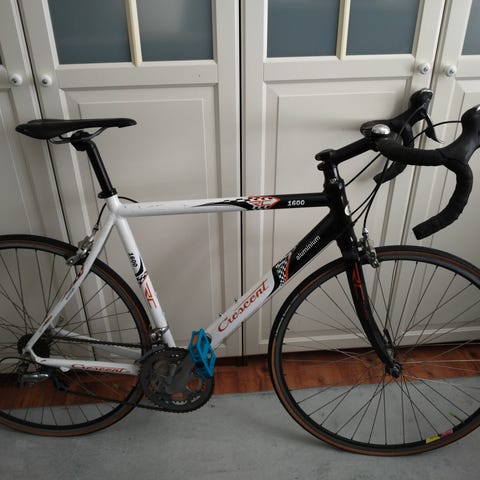 Träningscykel vit blå