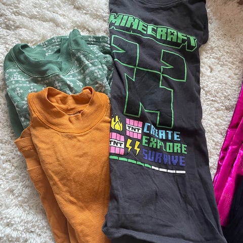 Klädpaket i stl 134/140 med flera plagg med Stranger Things-tryck, bland annat t-shirts, linnen, klänning, shorts och huvtröja. Kläderna kommer från H&M och Zara. Kläderna är i fint begagnat skick, det kan finnas någon liten fläck på några av plaggen, men inget som är utmärkande eller stör.